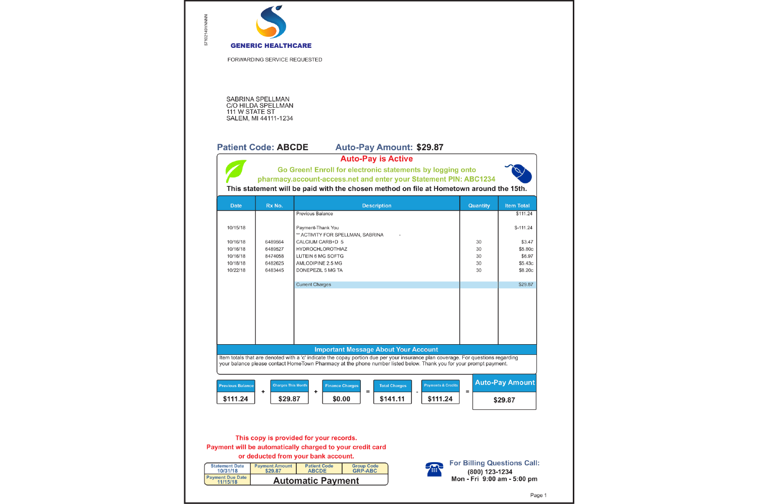 A billing statement is a periodic report issued to customers. Step 3 Next section is to fill the patients name address and contact number. They are usually issued at the end of a billing cycle which usually lasts for a month.
